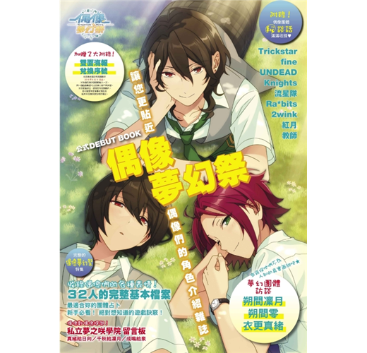 最夢幻的手機遊戲「偶像夢幻祭」的第一本導讀書出爐了!轉入這所坐落在面朝大海的山丘上,專門培育偶像的夢之咲學院的製作人科的您,是有著特殊立場的轉學生。在此您得學習如何訓練偶像,讓他們閃亮登台!本書中除了有偶像們的詳細基本資料外,還歸納了讓您更樂於遊戲中的七大重點!想更接近偶像,了解遊戲秘訣就不能錯過!