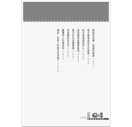 但這還不是作者的目的,讓你懂得如何識破謊言只是第一步,本書更深的用意在於讓你更好地與謊言共處。因為這不僅是一種智慧,更是一種人生的境界。只有徹底讀懂了這門處世藝術,你才能在謊言的世界裡遊刃有餘,規避謊言的危害,暢享謊言的樂趣。