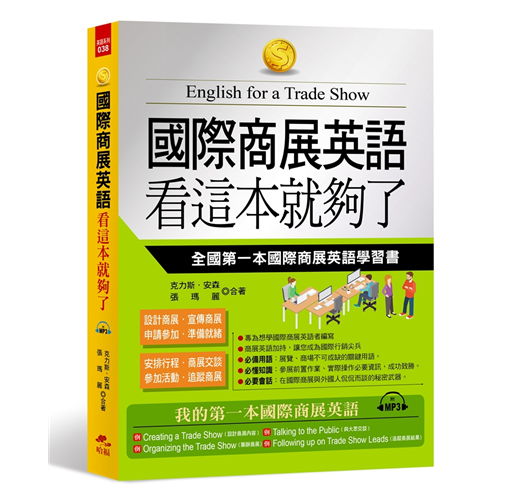 本書專為學生、一般大眾、企業人士、中小企業經營者、國際商展相關工作者學習英語而寫。對於已有國際商展會概念者,本書引導你的英語能力結合專業更上層樓;不懂國際商展或初學國際商展概念的讀者,可以學習英語、吸收國際商展觀念兩者同時並進。擁有靈活的英語會話,又有正確的國際商展概念,將使你比別人更有競爭力,對工作發展當然更是莫大的助力。