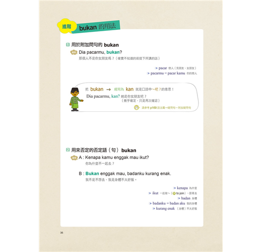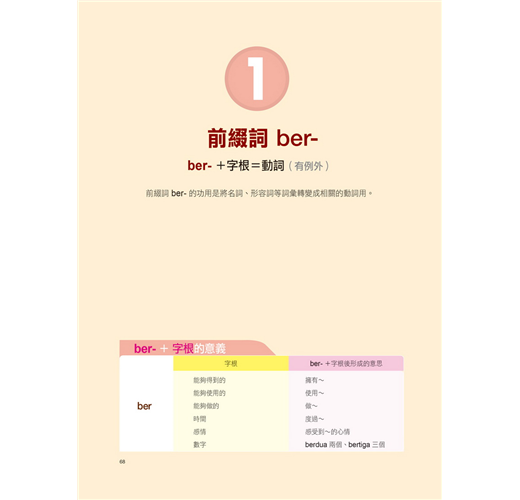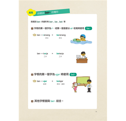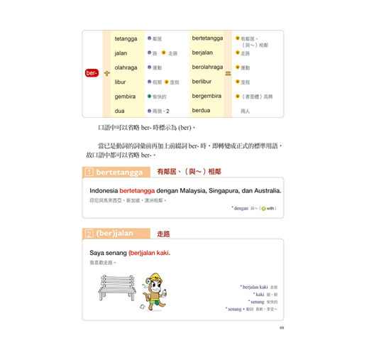 各類前述的常用綴詞部分都有詳細的說明,掌握其他語言中所沒有的綴詞之後,印尼語就能變得非常簡單。