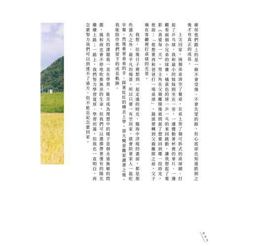 每每回家,我都覺得弟弟妹妹又長更高了,那是一種看到他們成長的喜悅、卻又希望他們永遠單純的矛盾。《麥田捕手》裡的霍爾頓說:「成長很像成千上萬個孩子在一大片麥田裡面奔跑,而他就站在懸崖邊守護那些在麥田中遊戲的孩子,若是有人跑到懸崖邊,他就會去抓住那些孩子,以免他們落到懸崖下面。」可以的話,我也想成為弟弟妹妹的麥田捕手,確保他們踏上的是一條不會受傷、不會失望的路,但心底卻也知道跌倒之後才有真正的成長。