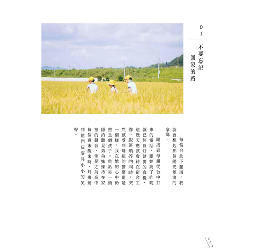 長大的課題我一直在學習,能否成為理想中的樣子是個永遠無解的問題,風和雨也會不停地吹進無奈的生命,但我們可以選擇帶著僅有的陽光繼續上路;一路上,我們努力學習寬厚、學習坦蕩,但我也一直明白,再怎麼努力仍會有到達不了遠方的時候,卻不能忘記怎麼回家。