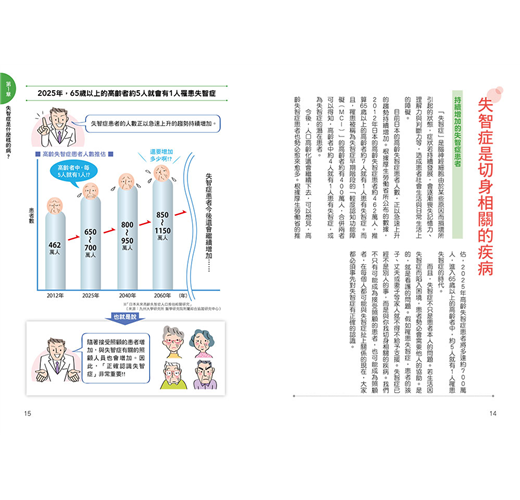 隨著人口高齡化的推進,失智症患者的人數急速增加,電視、報章雜誌報導失智症的機會變多了,不曉得失智症這種疾病的人也變得愈來愈少。「失智症成為一種切身相關的疾病」,應該很多人深切地體悟到這一點了吧?不過,另一方面,也有不少人儘管心中覺得不踏實,依然把失智症當做是別人家的事,認為「我和我家人不會罹患失智症」。