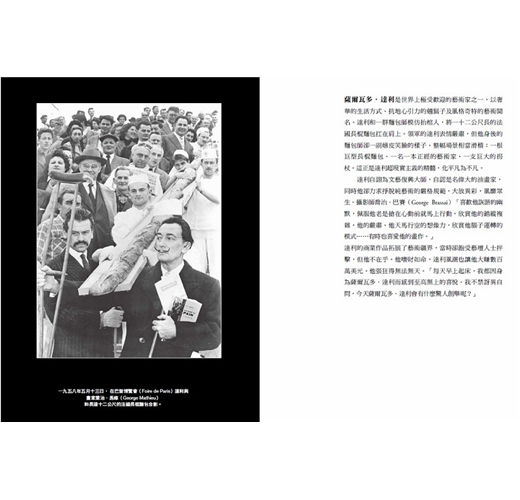 達利自詡為文藝復興大師,自認是名偉大的油畫家,同時他卻力求掙脫純藝術的嚴格規範,大放異彩,風靡眾生。攝影師喬治.巴賽(George Brassai)「喜歡他詼諧的幽默,佩...