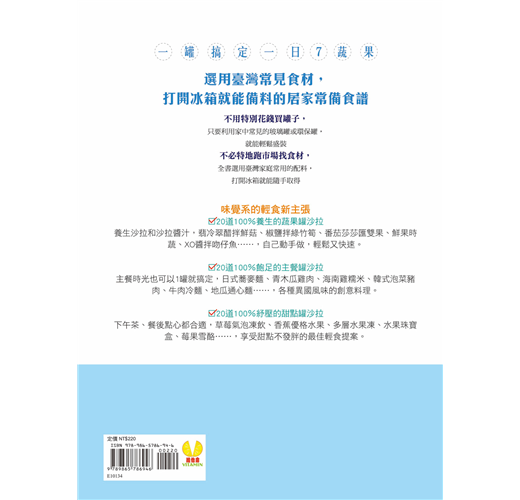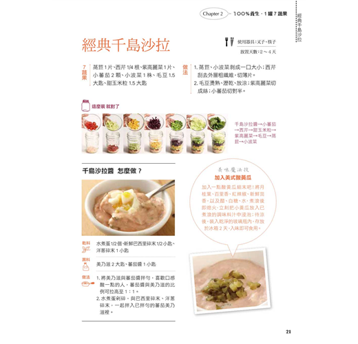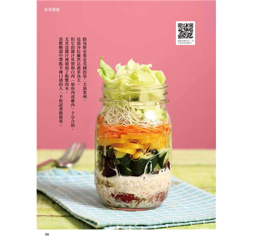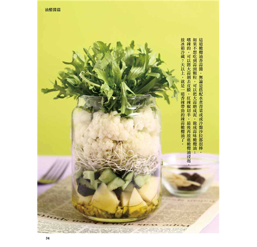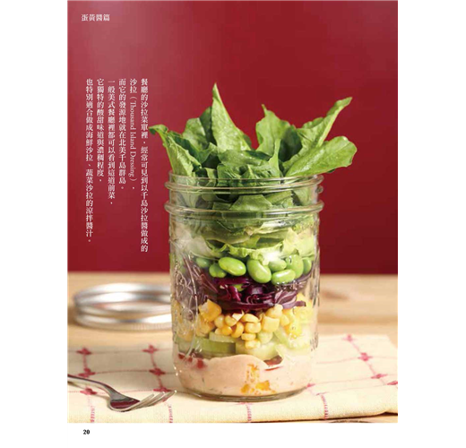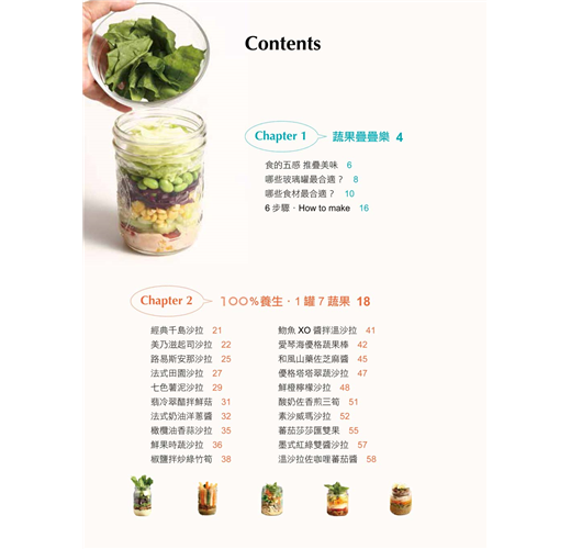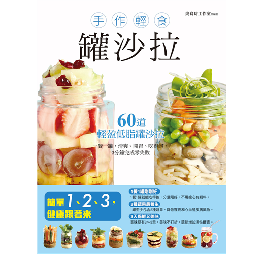 60道輕盈又美味的創意罐沙拉,只要利用常見的玻璃罐、環保罐等,食材透過簡單的切碎、料理後,層層堆疊入瓶罐中,就能簡便完成美味的一餐。