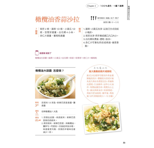 製作細節不馬虎:食材事前的準備,依照食材特性,切成適合大小,盛裝細節等,全都詳細解說。