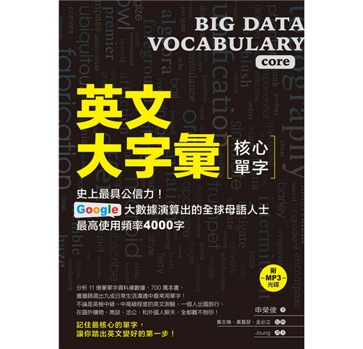 所謂「英文大字彙」就是利用「大數據」(Big Data)分析,篩選出的英文字彙。然而,以往已經有許多的英文單字書,都說自己是利用「大數據資料庫」來做篩選的,大家憑什麼相信這本書整理出來的英文大字彙呢?