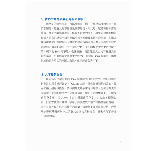 一直以來都想根據系統性的資料,來製作一本按使用頻率的優先順序排序的單字書。因此在研究之後製作了這本系統性的單字書。真心希望能夠對各位的英文學習有所幫助。