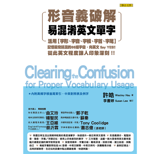 許皓老師,彙整十多年來在英語學習以及專業教學之經驗,不同一般辭典式單字書,從形音義三大面向,精心編選88組常見易混淆英文