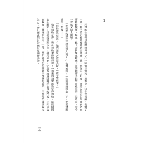 床邊的心情機自動鬧鐘傳來小小一陣愉快電流,把瑞克.狄卡德電醒。他嚇了一跳。猝不及防被電醒總是害他嚇一跳。他從床上起身,穿著五顏六色的睡衣站在那裡伸懶腰。現在,他太太伊蘭在她床上睜開她那不悅的灰色眼睛,眨眨眼,呻吟一聲就又閉上眼睛。 「妳把妳的潘菲德設定得太弱了。」他對她說:「我要重新設定一下,妳就會醒過來,然後……」 「別動我的裝置。」她的語氣苦澀而尖銳。「我不想醒來。」 他坐到她身旁,彎身對她柔聲解釋道:「如果妳把電流設定得夠強,就能開開心心醒來;這就是重點所在。設定成C,它就會跨越阻礙好心情的門檻,正如同它在我身上發揮的作用。」他一團和氣地拍拍她蒼白裸露的肩頭,因為他把強度設定為D,所以他此刻對這個世界滿懷善意。 「你這個死條子,把你的髒手拿開。」伊蘭說。 「我不是條子……」這下他煩躁起來了,儘管他沒設定這種情緒。 「你比條子還糟。」他太太依舊閉著眼說:「你是條子僱的殺手。」 「我這輩子從沒殺過一個人類。」現在,他的煩躁加劇,演變成滿腔的敵意。 伊蘭說:「只殺過可憐的仿生人。」 「我注意到妳花我帶回家的賞金可從不手軟,心血來潮就亂買。」他起身,邁步走到他的心情機控制台前,說:「也不存一點錢,好讓我們能買一隻真正的羊,換掉樓上那隻電動假羊。這些年來我過關斬將賺賞金,只換來區區一隻電動的動物。」在控制台前,他猶豫著要撥到丘腦抑制功能,熄滅怒火,還是撥到丘腦刺激功能,發狠吵贏這場架。 伊蘭瞪大眼睛看,說道:「要是你撥到變本加厲,我也會如法泡製。我會撥到最最最強,你就等著跟我大吵一架。到時候,你就知道截至目前為止我們吵過的架都不算什麼。撥啊,走著瞧,你試試看。」她速速起身,連跑帶跳衝到自己的心情機前,站在那裡怒視他,伺機而動。 他敗給她的威脅了,只得嘆口氣道:「我會撥到我今天排定的情緒。」查一下二○二一年一月三日的排程,他看到排的是適合上班的專業態度。他小心翼翼地說:「要是我按照排程調,妳是不是也願意照做?」他老謀深算地等著,除非他太太附議,否則他不動手。 「我今天排了六小時的憂鬱自責。」伊蘭說。 「嗄?排這種東西幹麼?」如此一來,心情機就沒有存在的意義了。「我甚至不知道可以這樣設定。」他鬱悶地說。 「有一天下午,我坐在這裡。」伊蘭說:「照常把《友善巴斯特麻吉天團》打開來看。他說有一件大事要爆料,接著就播起那個爛廣告,我很痛恨的那一個,你知道,就是防輻射下體護具的。所以我暫時把聲音關掉,然後聽到這棟大樓裡,就是這棟,我聽到……」她伸手比了比。 「一戶又一戶的空屋。」瑞克接口道。有時在夜裡,照理說應該是睡著了的時候,他也會聽到。然而,這年頭住滿一半的大樓就算人口密集度很高了;戰爭之前是郊區的地方,你甚至可能發現建築物裡完全空無一人……或者,他聽說是這樣啦。一直以來,他都只是聽說而已;如同多數人,他也沒有興趣親自證實一下。 伊蘭說:「當下,在我把電視機聲音關掉的時候,我的心情是三八二,我才剛撥過去而已。所以,儘管我知道自己應該覺得很空洞,卻沒有空洞感。我的第一反應,是很感激我們還買得起潘菲德心情機。但接著我意識到這有多不健康,不只在這棟大樓,而是不管到了哪裡,我都看到沒有人煙、一片荒涼蕭瑟,但我卻沒有情緒反應。你懂嗎?我猜你不懂。但在以前,這被認為是精神疾病的一種徵兆,人稱『恰當感覺缺失』。所以,電視繼續關著靜音,我坐到我的心情機前東試西試,最後找到絕望情緒的設定。」她那巴掌大的小臉一掃陰霾,露出滿足的神色,彷彿她達到了什麼了不起的成就。「於是,我把它排到我的排程上,一個月兩次,感到一切無望,畢竟地球上隨便哪個小老百姓都移民了,我們卻還留在這裡。我想這樣的時間分量很合理,你不覺得嗎?」 「可是像那樣的一種情緒……」瑞克說:「妳很容易就會陷在裡面,後面就撥不出來了。那種對現實的徹底絕望,是永無止境、沒完沒了的。」 「我安排了三小時後自動重新設定。」他太太狡猾地說:「切換成四八一,感覺未來有無限的可能,嶄新的希望……」 「我知道四八一。」他打斷道。他好幾次撥到那個數值;他很依賴四八一。「聽著。」他坐回自己床上,抓住她的雙手,把她拉下來坐在他旁邊,說:「就算有自動終止設定,體驗負面情緒還是很危險,無論哪一種。別管妳的排程了,我也會拋開我的排程;我們一起撥到一○四,一起體驗一下,接著妳就繼續保持下去,我則是重新設定成平常適合上班的態度。這樣我就會想爬上樓頂,查看一下我們的羊,然後出發去辦公室。同時,我也會知道妳沒坐在這裡胡思亂想,不好好看電視。」他放開她細長的手指,穿過寬敞的屋內來到客廳。客廳還隱約留有昨晚的菸味,他彎身打開電視。 伊蘭的聲音從臥室傳來:「我受不了在早餐前開電視。」 「撥到八八八。」趁電視開機的時候,瑞克說:「無論電視上演什麼都想看。」 「我現在什麼也不想撥。」伊蘭說。 「那就撥到三。」他說。 「我就說了不想撥,你還叫我撥到三。如果我不想撥,那我最不想撥的就是三了啊!因為三會讓人有想撥心情機的渴望,而此時此刻我最不想要的就是這種渴望;我只想坐在床上盯著地板。」她尖聲說道,語氣透著蕭瑟的寒意。她的精神委靡下來,整個人頹然不動,直覺產生的
