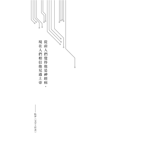 現實的世界變得越來越像菲利普.狄克數十年前的預言時,他的小說開始越來越被重視、越來越多人閱讀、越來越常被提及討論,也有越來越多的讀者將他當年的奇思怪想轉換、消化,用來面對現今似乎同菲利普.狄克故事一樣光怪陸離的世界。── 文字工作者 臥斧