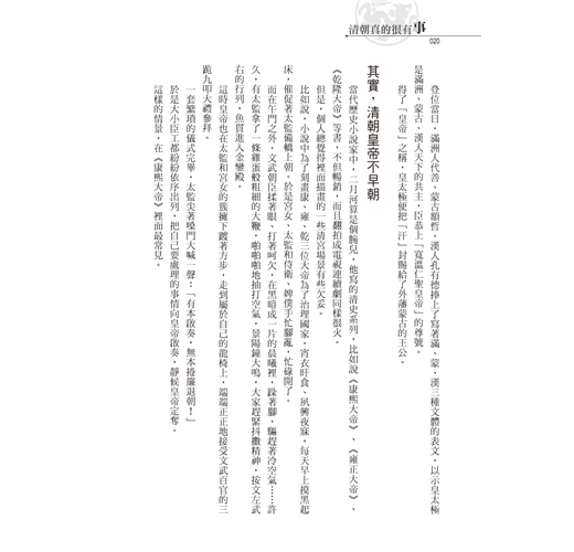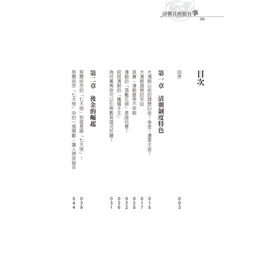 作者透過時人所整理的檔冊、公文、閱件、評論,並同步參考正史與野史等多方材料,帶領讀者一件件剖析大清朝歷史中容易被誤解的史事,還原史事的本原,並用不同的角度看待這段精彩且很有事的清朝歷史。