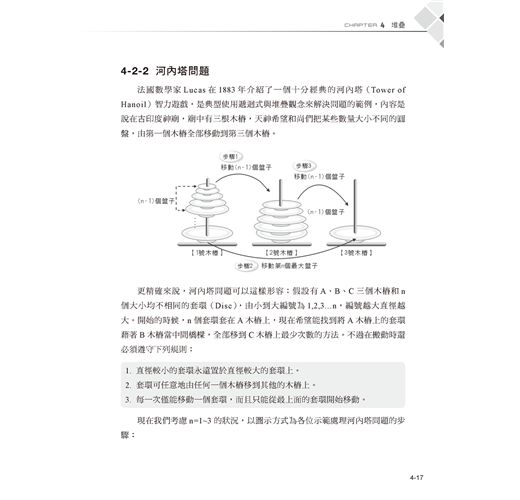 每章重要理論均有範例實作,收錄了完整的演算法及程式執行畫面,讀者可依照個人學習進度作練習,除此之外,大量蒐集符合各章教學內容的習題,供隨時驗收學習成果。