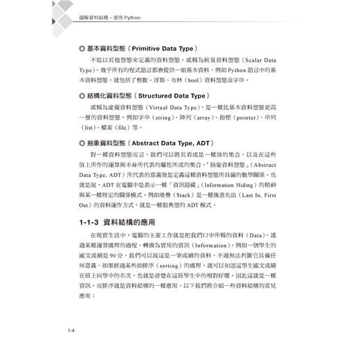 ◎以Python語言實作資料結構中的重要理論,以範例程式說明資料結構的內涵。