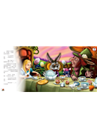 跟三月兔和睡鼠一起舉辦瘋狂茶會,因為跟時間先生吵架,所以一直停在下午四點鐘,不停的喝著茶、吃著蛋糕。.