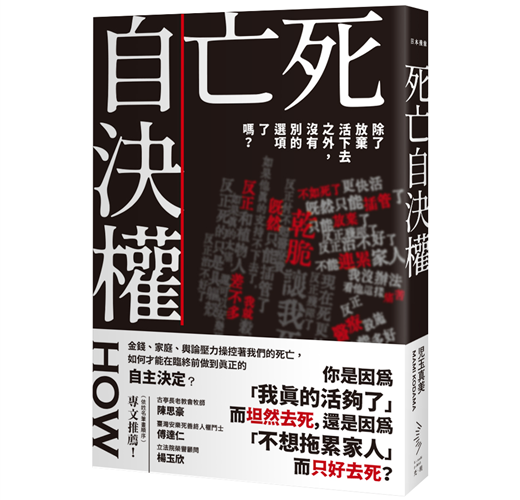 《死亡自決權》在討論安樂死合法的議題上,確實是「弱了、黯淡了」一些。如果你只是想知道「安樂死該不該合法」「要贊成還是反對安樂死」,建議不要讀這本書,它無法賞你個痛快。然而,如果我們幡然了悟,生命的終結有時雖輕如鴻毛,仍令人難以承受;即使重如泰山,卻又讓人茫然無措,那麼就不應該錯過《死亡自決權》,這真的是適合現時臺灣細細品味、好好省思的一本書。