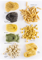 新鮮麵食/手切寬麵佐波隆納肉醬/細麵佐松露奶油醬/春蔬千層麵/小耳朵麵佐甘藍菜苗與羊乳酪/馬鈴薯麵疙搭佐香辣番茄醬/新鮮的義式麵餃/皮埃蒙特肉餃佐奶油醬/大肚餃佐核桃醬/圓形小麵餃佐肉高湯/乾製麵食/維蘇威火山麵佐香腸肉醬與苦苣/大水管麵佐海鮮醬/粗直麵佐起司胡椒醬