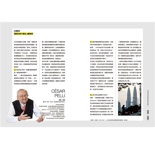 這本書最想傳達給讀者的,其實正是這些頂尖建築師豐功偉業背後的工作故事。他們究竟經歷過如何的掙扎和摸索,才形成今日的自信和理念。當面對市場版圖擴大,Gensler從3人迅速發展成5000名員工的龐大組織,實踐不是「我」而是「我們」的合作精神。Piano卻堅持工坊精神,不擴大組織,維持20件的進行規模,好全程參與所有設計案,不同的擴展方針,卻仍各自創造出驚人的營業額。