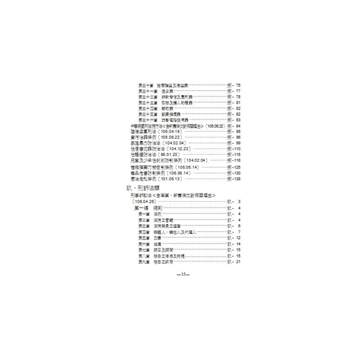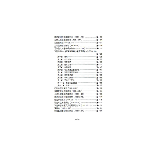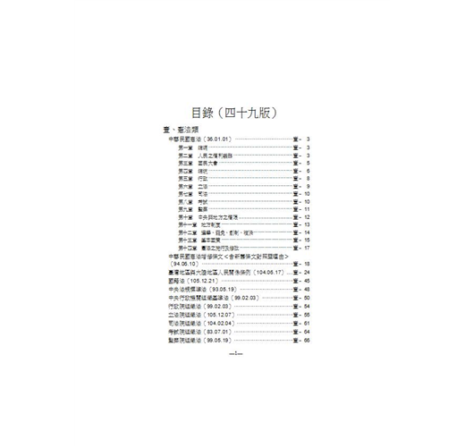 2.新增新增聯合國憲章、維也納條約法公約、維也納外交關係公約、法院便民禮民實施要點、法庭旁聽規則、法庭席位布置規則、法庭錄音錄影及其利用保存辦法、前瞻基礎建設特別條例、政務人員退職撫卹條例、公務人員退休資遣撫卹條例、公立學校教職員退休資遣撫卹條例