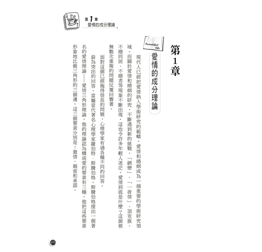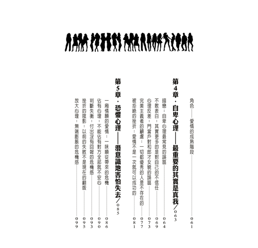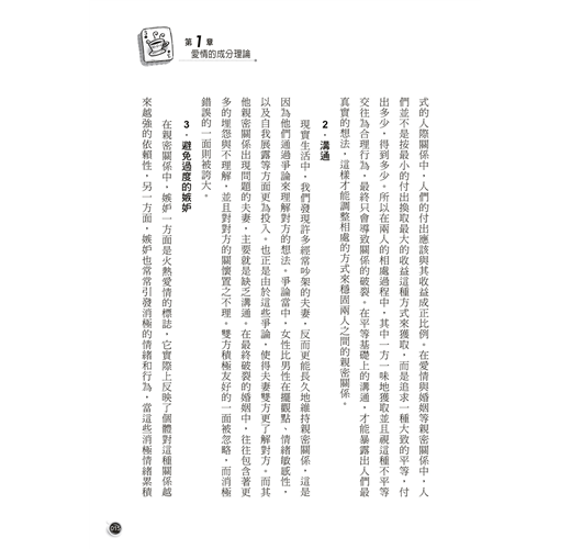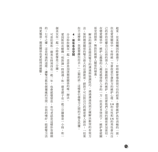 同時本書還對每種錯誤心理從知識的角度進行分析,讓讀者能夠在知其然的同時能夠知其所以然,對每種錯誤心理的根源都有一個清晰的認識,並進而在愛情的每個環節中得以避免。