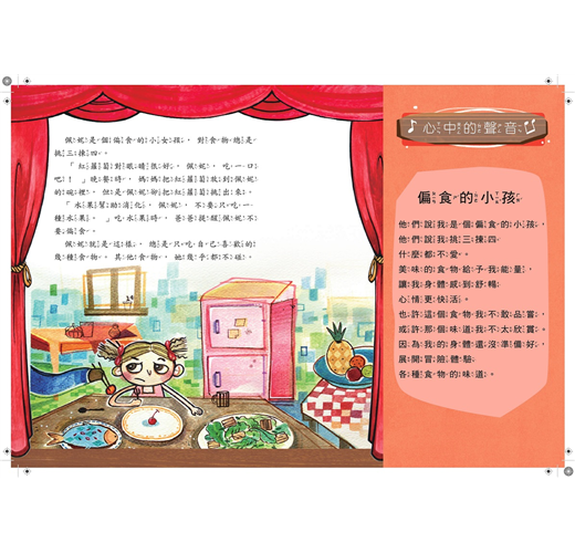 佩妮是個偏食又固執的小女孩,總是只吃喜歡的幾種食物,還會把菜裡的蔥薑蒜等配料都挑掉,認為那是多餘的。因為偏食又不愛運動,她長得瘦瘦小小的。因為固執的和別人比較,她老是覺得自己不起眼、不重要。