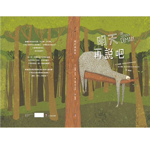 小樹懶巴哥整天呆在樹上,看似漫不經心,什麼事也沒有做,只會不停的說「明天再說吧」,其實用心看見了許多忙碌的人們看不見的美好事物。