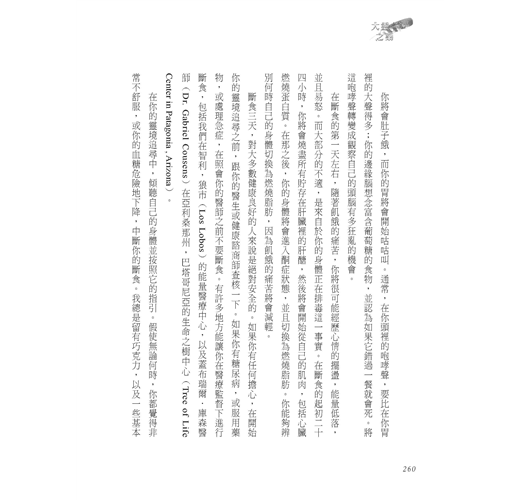 第三部份:戰勝那悄悄潛近你的死亡。你將會改善因伴隨著憤怒和恐懼而失能的心智與情緒模式,並學習哪些營養素能增進高階大腦功能,幫助你管理壓力。你將會接觸到粒線體,那只遺傳自母親的細胞能量中心,它們代表母性生命力。你將學到如何重置細胞的死亡時鐘,並打開由粒腺體控制的長壽蛋白質。也將會發現自由基與發炎反應對身體作了什麼事,以及如何逆轉損害。而且你將發現,能從你的發光能量場清理疾病印記並且升級它,來修復你的身體與大腦的傳統薩滿療癒技巧。