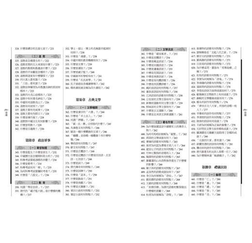 內容囊括認識國學、經史子集、宗教、政治軍事、古典文學、禮儀風俗、藝術、醫學科技等各方面知識。