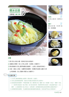 吃、更營養,而且在製作過程中,所有菜餚都不放雞精、味精,更多的是採用味極鮮醬油、蠔油、胡椒粉及各種自製醬汁等調味品來調味,使得每道菜餚既營養又健康,還不失菜餚的美味和食材原有的鮮味。本書最後還介紹了自製各種調味料的方法。