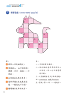 ☉本作業簿配合教材使用,全冊搭配生動的彩色圖片做練習,並以各種題型練習生詞、語法要點及讀寫中文,包括發音、改錯字、選擇、連連看、填空、重組及英譯中等,能幫助學生加強練習,並了解學習成果。