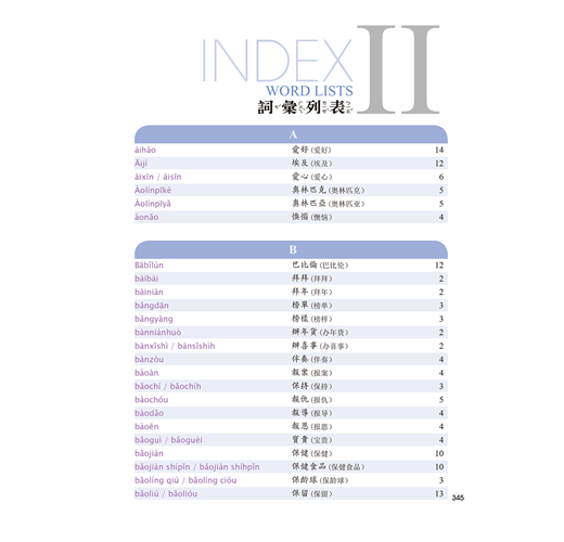 本書專門為母語非華語的人士設計,著重於會話練習,由訓練學習者的基本發音做起,透過課文對話,帶領學習者逐步熟習常用字彙及語法,再配合MP3輔助光碟,讓學習者達到日常生活中能流利使用華語的目的。書中所有生字與生詞例句,係採用注音符號、漢語拼音、通用拼音並列,以增加讀者多元的認讀方式。