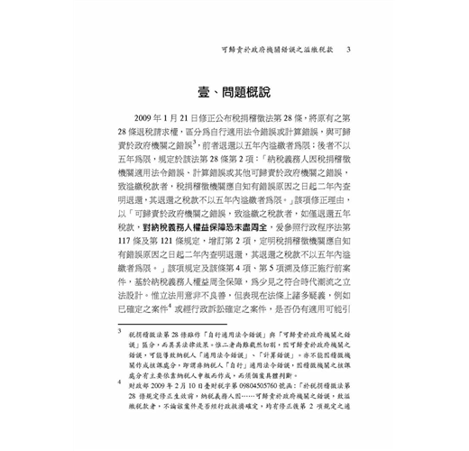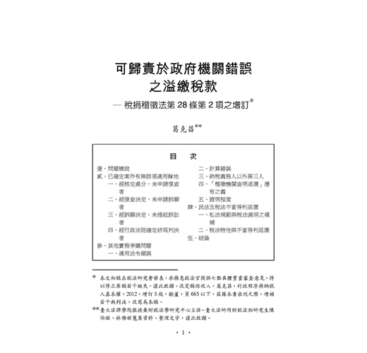 01.可歸責於政府機關錯誤之溢繳稅款:稅捐稽徵法第28條第2項之增訂/葛克昌