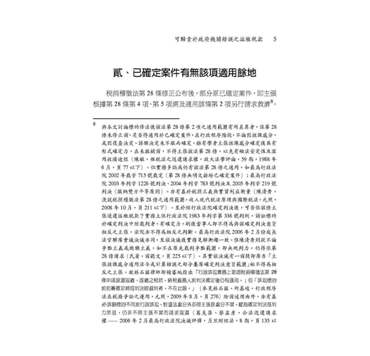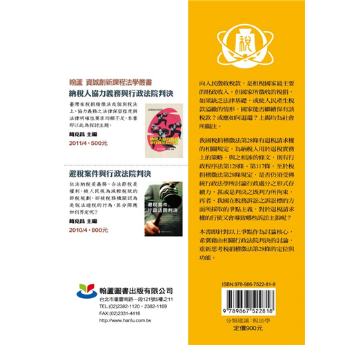 本書內容主要針對以上的爭點作為討論的核心,希望切由相關行政法院判決的討論,重新思考稅捐稽徵法第28條的定位與功能。