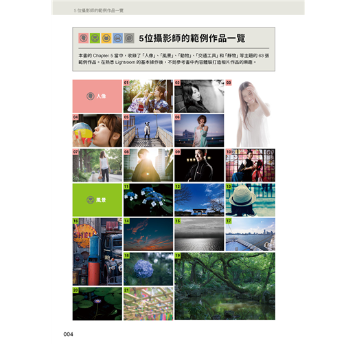 含括人物、風景、靜物、動物、交通工具、夜景、…等豐富題材,即使面對不同拍攝題材都能隨時因應,調修出心中理想的畫面!