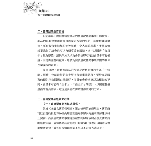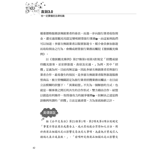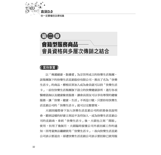 沒有艱澀難懂的法律條文,以最簡單易懂的實務案例說明,讓你跟直銷法規零距離。