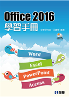 本書涵蓋Office 2016四大軟體Word、Excel、PowerPoint及Access,從基礎、進階操作到各項功能的使用介紹都做了詳細的說明。只要一本就能學會文書排版、計算及函數的應用、製作精美簡報及建置資料庫等技巧。本書運用大量的範例說明,讓您從操作範例中逐一學習到各種使用技巧。每章最後都附有「自我評量」,學習後可立即測試自己所學。本書附贈的光碟收錄書中範例檔案,可隨時開啟並立即練習。