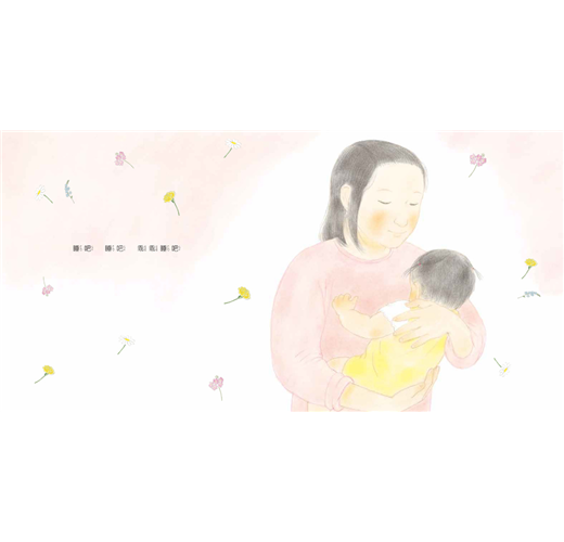 本書以舒緩輕柔的節奏,帶我們重溫嬰兒被媽媽安穩地抱在懷裡,慢慢進入夢鄉的寧靜美好。淡雅的色鉛筆畫一如母親的溫柔,描繪著嬰兒圓嘟嘟的粉嫩臉龐、小手、腳趾……哄著抱著孩子入睡的每個片刻,都帶著無比的滿足與歡喜。