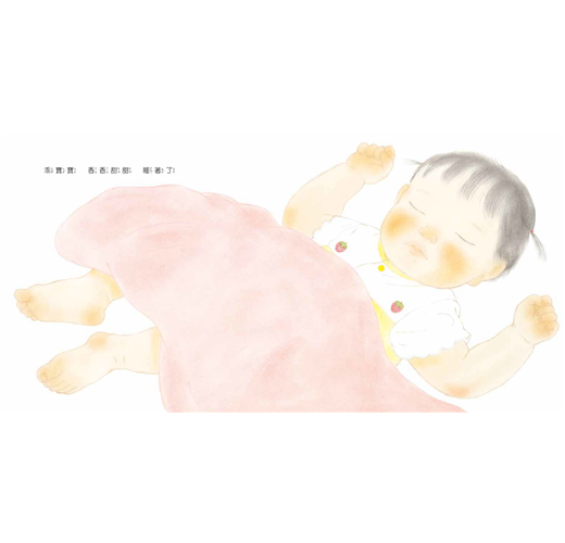 「這本繪本文字與畫風溫暖柔和,表達出媽媽對小嬰孩似水的柔情和無盡的憐惜、疼愛。看著畫面中嬰孩安詳熟睡的臉龐,想起我家孩子小寶寶時候入睡的模樣,如此迷人、耐看,育兒的辛勞疲累,都在注視著寶寶的睡容中消除了。如是暖心的繪本,必將擄獲每顆懷抱柔軟母愛的媽媽心。」