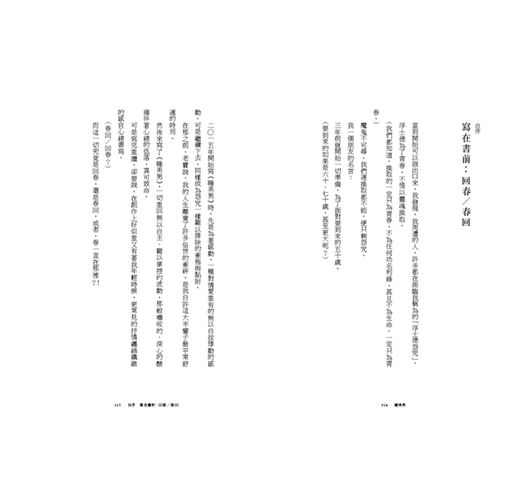 寫在書前:回春/ 春回 當到開始可以說出口來,我發現,我周遭的人,許多都在面臨我稱為的「浮士德怨咒」。浮士德為了青春,不惜以靈魂換取。 (我們都知道,換取的一定只為青春,不為任何功名利祿,甚且不為生命。一定只為青春。) 魔鬼不可尋,我們連換取都不能,便只剩怨咒。 我一個朋友的名言: 三年前就開始一切準備,為了面對要到來的五十歲。 (要到來的如果是六十、七十歲,甚至更大呢?) 二○一五年開始寫《睡美男》時,先是為著感動,一種對情愛重有的無以自拔悸動的感動。可是繼續下去,同樣成為怨咒一樣難以排除的牽拖與黏附。 在那之前,老實說,我的人生離棄了許多俗世的牽絆,是我自許這大半輩子最平常舒適的時刻。 然後來寫了《睡美男》,一切重回無以自主、難以掌控旳波動,那般嚙咬的、深心的酸痛伴著心緒的低落,真可致命。 可是寫完重讀,卻要說,在創作上好似重又有著我年輕時候,更常見的抒情纏綿纖緻的感官心緒書寫。 (春回/回春?) 而這一切究竟是回春,還是春回,或者,春一直在那裡?!