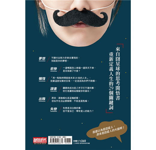 時至今日,每每想起受到諸多人的幫助,心裡依舊感激不已。我把接下來幾乎所有時間都奉獻到推廣閱讀和知識,長達數月未休假,更耽擱了寫書的任務。為免夜長夢多,編輯幫我收集了過去在臉書和部落格的文章、受歡迎的影片腳本,並邀我有閒時再添數筆,集結成了這本《囧星人的人生百想妙答》。本來我還很不願意出版,因為此書創作時間跨度實在有點長(從二十四歲到三十歲),風格偶有太跳躍的問題,在許多方面想法也不夠深入。