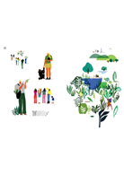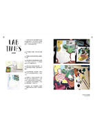 此外這本書也和多位插畫藝術家和視覺創作者的合作,在每段章節中,作者都會提出各種創作方式的有效媒材、創作過程、還有藝術家們的一些範例作品,讓讀者能夠在實驗過程中得到更充分的資訊和擴展創作的可能性。