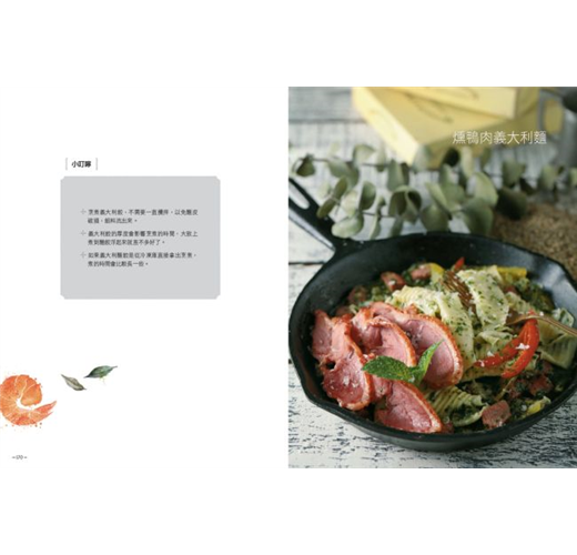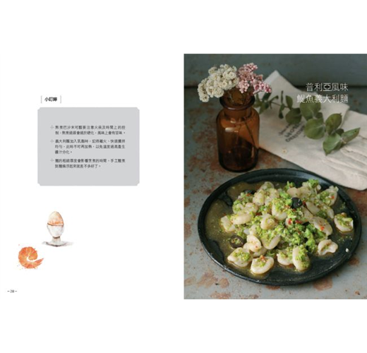 全書附有美麗的圖片和最佳的作法,藉此了解義大利麵食多元化與區域性的特點,是周末親自用手製作的最佳美味。