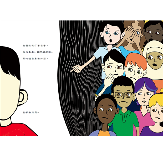 雖然媽媽這麼說,但是其他人卻不這麼認為。其他人只看到奧吉不平常的長相,忍不住盯著他看,背地裡指指點點的嘲笑他的長相。這些耳語,讓奧吉覺得非常難過。