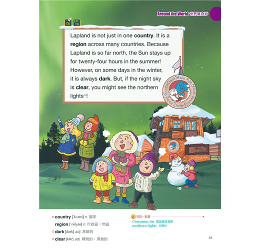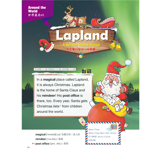 -介紹世界各地經典人事物及特色歷史文化等,有趣又好看的內容,不僅增廣見聞,還能達到寓教於樂的效果。本期介紹「拉普蘭」,拉普蘭是聖誕老人的故鄉,同時也是觀賞極光的最佳地點。