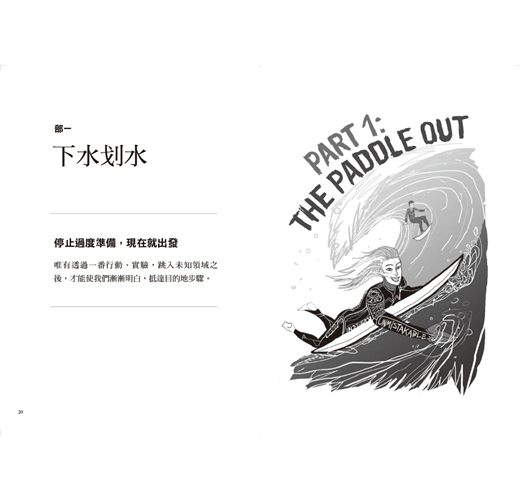 不可否認的是,因為追浪定義了我的人生,加上追尋獨創自我的關係,所以「衝浪」成為本書的核心架構。從站在岸邊往大海划水,從起乘一道完美的浪到歪爆,衝浪形同任何具有創造性、創業性或野心的努力。無論你想轉換跑道或開始創業,休學或復學,找出創作方向或精緻創作內容,我都希望這本書有助你實現獨創自我。