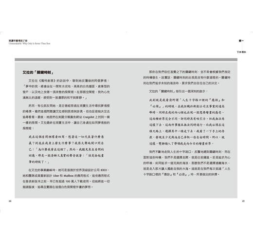 ♦如果短暫成功和曇花一現是你想要的,最好盡情參與電視實境秀和最新的社交網路。但如果你想要改變世界,這本書將會啟發和鼓勵你,以及讓你勝任自己。書中每則故事都很有震撼力,所給予的建議也很實在。──《3000元開始的自主人生》《追尋吧!過你夢想的人生》作者 克里斯・古利博(Chris Guillebeau)