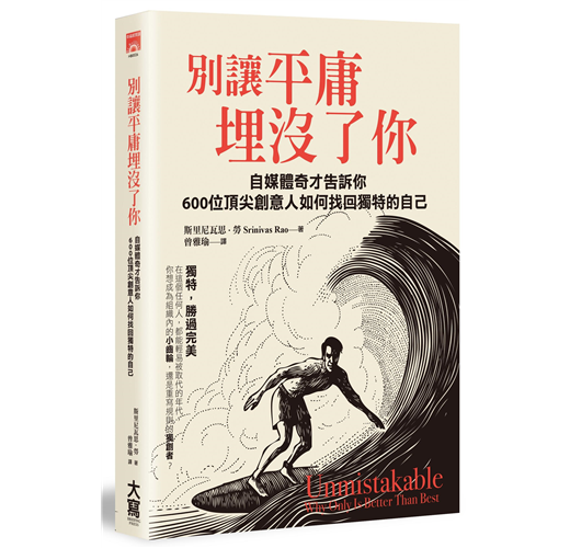♦這本書是部完美簡要的思想收藏集,內容混合著領導者的前衛思想與作者的見解。他的掙扎和突破,他與衝浪的關係,以上種種作為靈感的聖所和隱喻,將會激勵你反過來追求「獨創自我」。恭喜斯里尼瓦思寫了一本精緻、又富詩意和平易近人的小品雅集。──《創意就是這麼簡單》(Unthink)作者兼藝術家 埃里克・瓦爾(Erik Wahl)