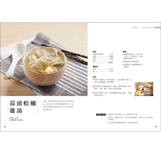一塊雞肉除了做成炸雞塊、宮保雞丁外,還能有什麼變化呢?Viola教你突破家常菜的想像,從洋芋燒雞、鹽麴薑燒雞、啤酒雞翅到繽紛雞肉捲,把相同的食材加點創意就能讓料理更出色,中菜也能西式化。做好料其實不需要準備高檔食材,只要利用常見的雞蛋、豆腐、當季蔬菜等,善用蒸、煮、煎、炒、滷、燉等手法,並搭配各種調味料,就能變成媲美高級餐館的極上佳餚。