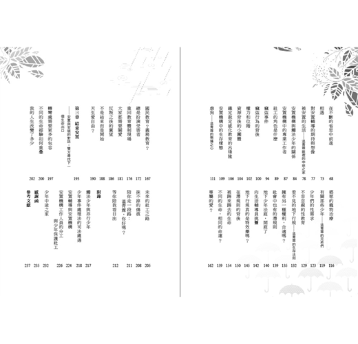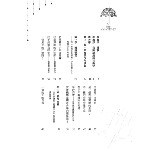 最後,本書的呈現,並不是想給讀者標準答案或者是符合社會期待的結果,而是希望在閱讀的過程中,大家能共同思考如何更細膩地看待觸法少年的生命議題。我一直認為人的互動是很微妙的,永遠不會有一個最好的模式或決定,而是隨著時間的流動,不斷地去調整規畫、不斷地充實自我與學習新知。寫作的同時,我也不斷地反思,並逐步調整工作模式。