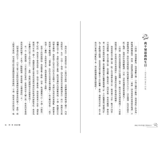 他突然轉頭直視著我,隨即又低下頭沉默了好些時候,繼續自顧自地說著許多離經叛道的「英勇行為」,但用的卻是稚嫩的聲調以及興奮莫名的口吻。